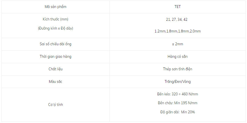 Phi ống: 21mm, 27mm, 34mm, 42mm.