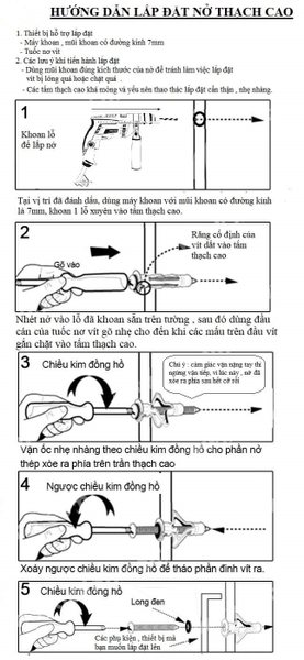 Sau khi nở thạch cao xòe hết, vặn vít theo chiều ngược lại để tháo ốc ra khỏi nở Vặn ốc theo chiều kim đồng hồ để lắp khung tấm chống ám khói lên trần nhà.